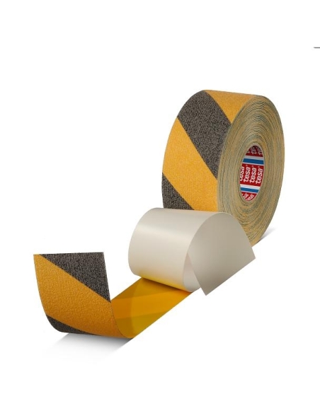 The application area for tesa® Anti Slip Professional range is everywhere safe footing is required. Anti Slip yellow & black is the ideal protection to prevent from skidding and therefore helps to avoid accidents in the job related. Very good adhesion of the product is suitable for demanding surfaces such as factory floors, industry areas etc. The strong and durable adhesive coating secures a high Anti Slip effect of up to 1- 2 years in normal use areas. The Anti Slip tapes are hand tearable and no shrinkage occurs after application.